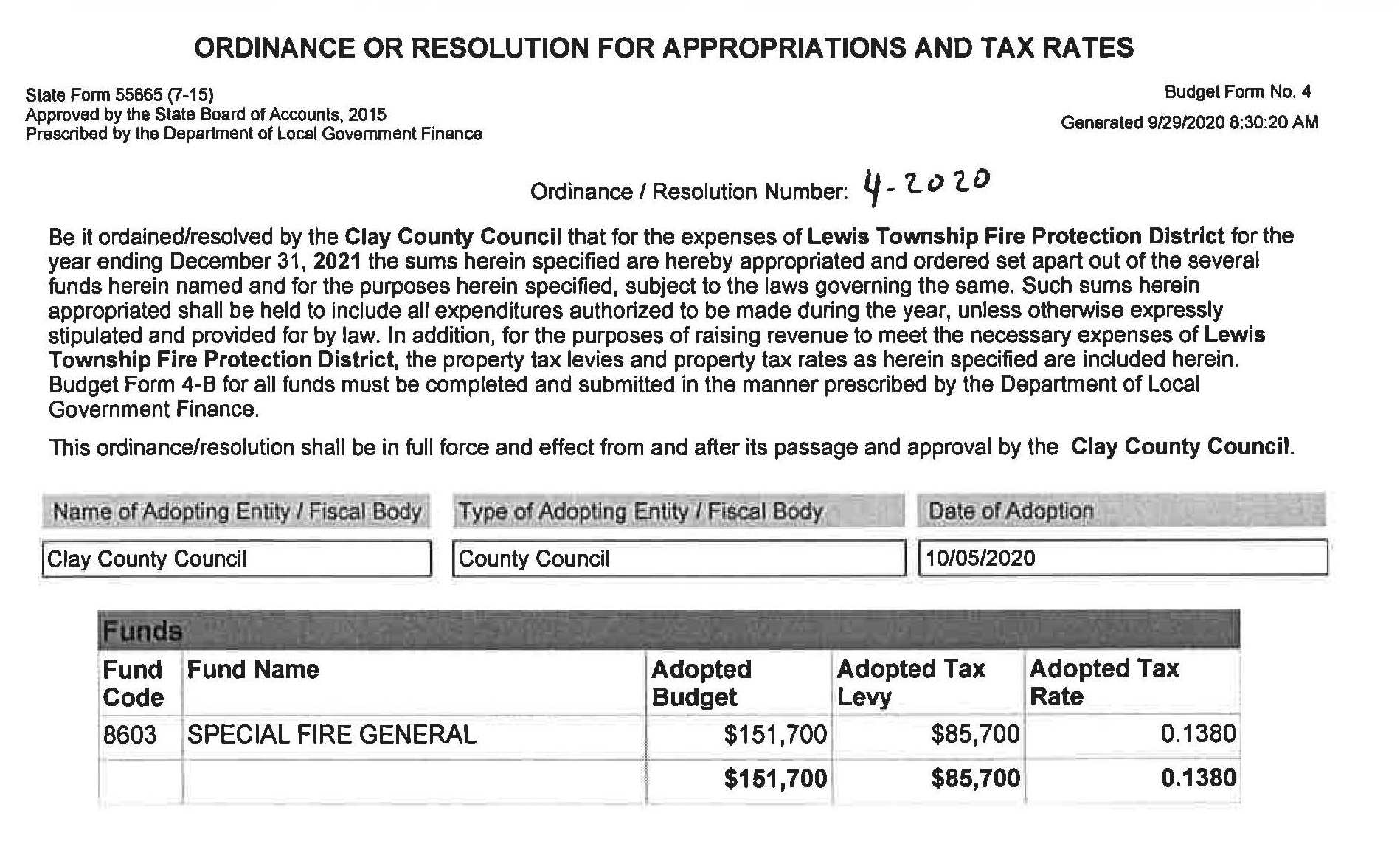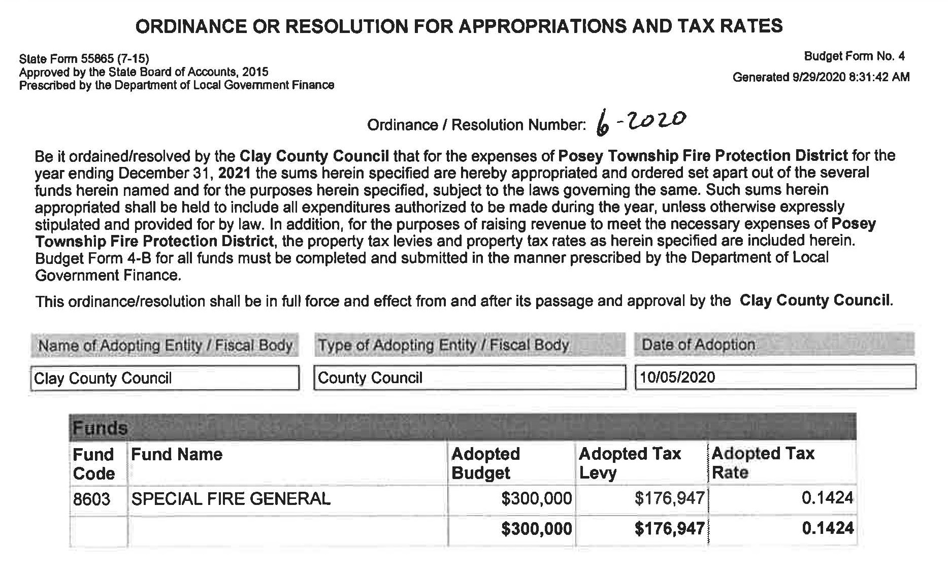 Ord 12-2005 Clay Co ID Security Protection Fund.doc